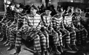 Det som sticker ut för mig är även att filmen känns rå och äkta. Den känns inte modern. Däremot känns det som om den tecknar en sann bild av sin tid. Efter att ha sett extramaterialet förstår jag dock att det är en sorts blandning av tiden då filmen utspelas (efter första världskriget) och tiden då filmen spelades in (början av 1930-talet). Jag noterade även att filmen visar hur rasistiskt och segregerat USA var på den här tiden. T ex en sån sak som att man redovisar antalet fångar i lägret genom att skriva ”69 Negroes, 33 White” på en griffeltavla, samt att svarta och vita åker i olika lastbilar på väg ut till straffarbetet.