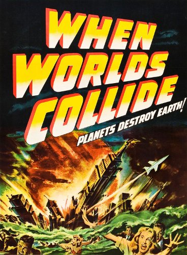 When Worlds Collide (Flykten från jorden) är charmig sci-fi från 50-talet om en stjärna (och tillhörande planet) som är på kollisionskurs mot jorden. Forskarna varnar men nästan inga lyssnar (min kommentar: hehe, ingen lyssnar, vad oväntat). Dock får man ihop pengar för att bygga en rymdraket för att några utvalda ska kunna fly från den fördömda Jorden. Som sagt, charmig var ordet. Ändå är filmen bitvis realistisk i sitt tema och de frågeställningar som tas upp. Vissa saker i filmen känns daterade och förlegade, som t ex 50-talets ganska skeva könsroller. Men det är intressant hur som helst. Ganska oväntat så visar filmen upp specialeffekter som faktiskt inte känns så himla daterade. I scenerna där New York dränks av en väldig flodvåg så gick tankarna direkt till The Day After Tomorrow. Haha, ja, det är sant. Godkänt blir betyget.