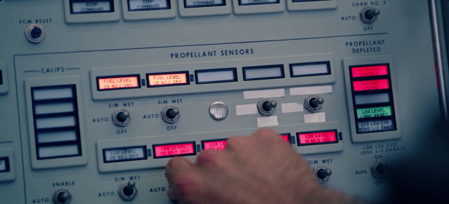 När vi kommer upp i rymden och börjar närma oss månen ändrar bilderna helt naturligt kvalitet. Det blir svartvitt och grynigt. Men det känns ändå rätt på nåt sätt. Filmens ton ändras från majestätiskt spännande till mer nervigt spännande. Själva månlandningen är en liten rysare i sig. Bränslet håller på att ta slut och Neil vid rodret får styra manuellt efter att datorn försökt få dem att landa i en massa sten och moras.