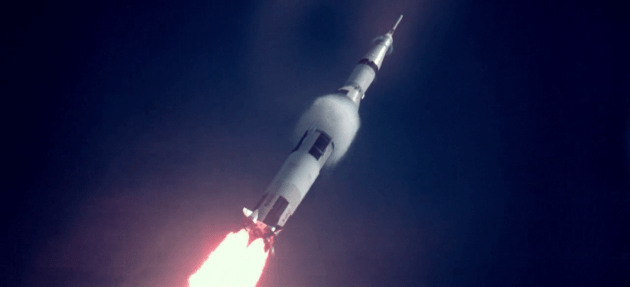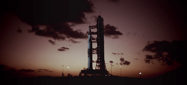 Inledningen, där vi får se det gigantiska, GIGANTISKA, fordonet som transporterar ut Saturn 5-raketen till uppskjutningsplatsen, gav mig rysningar. Männen som går omkring framför och omkring denna rullande bjässe ser ut som myror i jämförelse.
