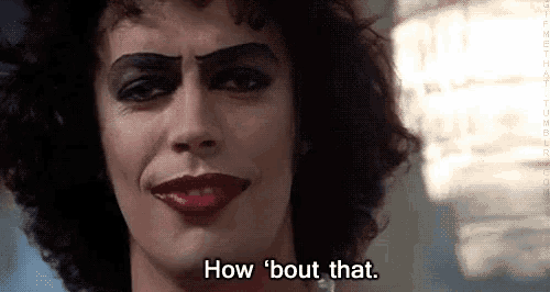 Jag får ändå ge Tim Curry att han i rollen som transvestiten Dr Frank-N-Furter visar upp en väldig pondus, utan tvekan. ”How ‘bout that”. Men som helhet, njae.