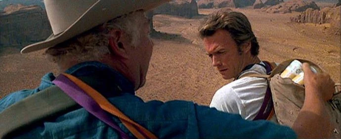 Det kanske bästa, nej, det bästa med filmen (förutom George Kennedy) är dess klättringsscener. De är helt otroliga. Fotot är strålande liksom miljöerna förstås. Först när Clintan behöver träna upp sina klättrings-skills i Monument Valley genom att bestiga The Totem Pole. Sen när Eiger ska besegras (?). Clintan gör dessutom det mesta av klättringen själv à la Tom Cruise. Det var han tydligen väldigt noga med.