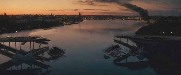 Jag tycker regissör Adam Berg har fått till bra miljöer i inledningen. Det är lite Children of Men-vibbar med kaos, krig och förvirring. Det är även svårt att låta bli att tänka på ett visst krig som pågår inte långt härifrån. Vare sig filmen ville det eller ej så kom den i rätt tid. Eller fel tid. Det beror ju på hur man ser det.
