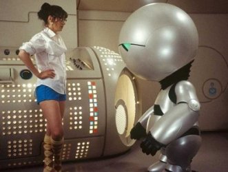 Snart träffar vi även på en galet överspelande Sam Rockwell som galaxens president. Jag tyckte faktiskt (oväntat måhända) att han var rolig. Problemet är att den typ av humor som (för vissa) funkar i bokform inte riktigt går hem på vita duken. Boken (som för övrigt är den enda boken som jag inte lyckats ta mig igenom) är väl mest ett enda långt kåseri med underfundiga utsvävningar och lustigheter. Det funkar helt enkelt inte på film. Det finns ingen röd tråd. Allt kan hända och det gör att det aldrig blir riktigt spännande. Jag är väl i och för sig inte rätt målgrupp eftersom jag inte gillade boken. Mos Def försvinner in i anonymiteten efter ett tag och man märker knappt att han är med. Man har slängt in en liten kärlekshistoria mitt i allt och den känns faktiskt uppfriskande äkta.