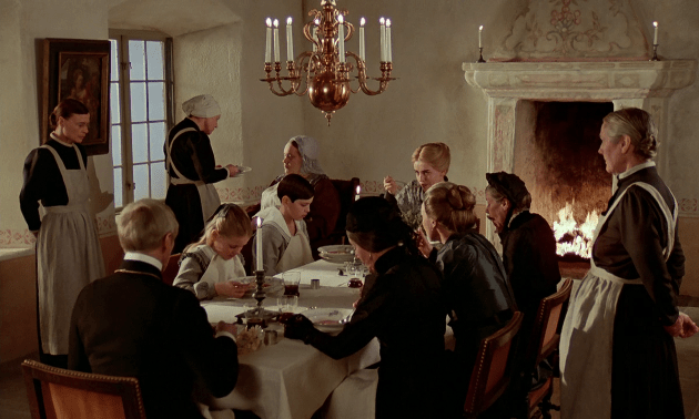 En som inte är övererotisk är Emilies (Ewa Fröling) man Oscar (Alan Edwall) och det antyds att Emilie hittar tillfredsställelse på andra håll, med andra män. Även det här hade jag missat under tidigare tittar. Under frukosten på juldagsmorgonen fnittras det när Emilie får höra att det är den stilige biskopen Edward Vergerus som ska hålla i julottan. Aha, Emilie och biskopen har haft ihop det tidigare. Minsann!